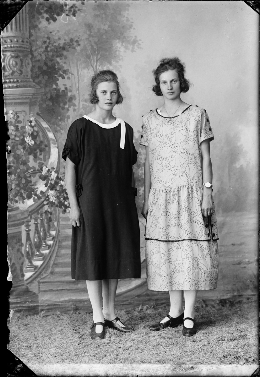 Ateljéporträtt -Två unga kvinnor, Östhammar, Uppland 1925