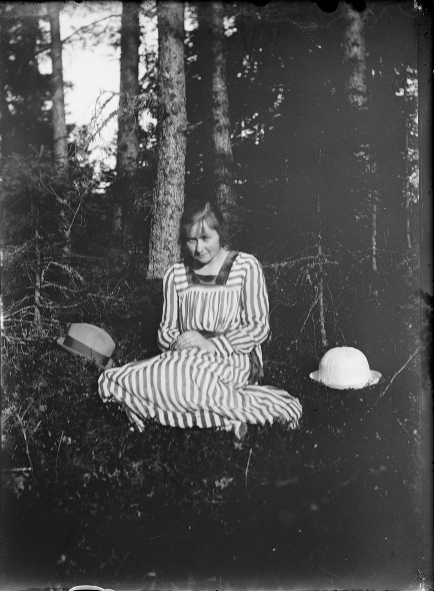 Kvinna sitter ute i naturen, Östhammar, Uppland
