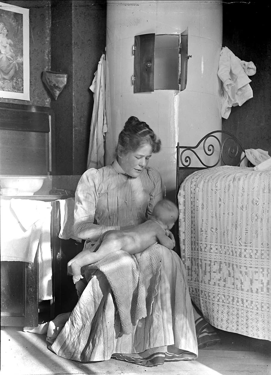 Kvinna med spädbarn, eventuellt "fru Åström", sannolikt Uppsala 1901