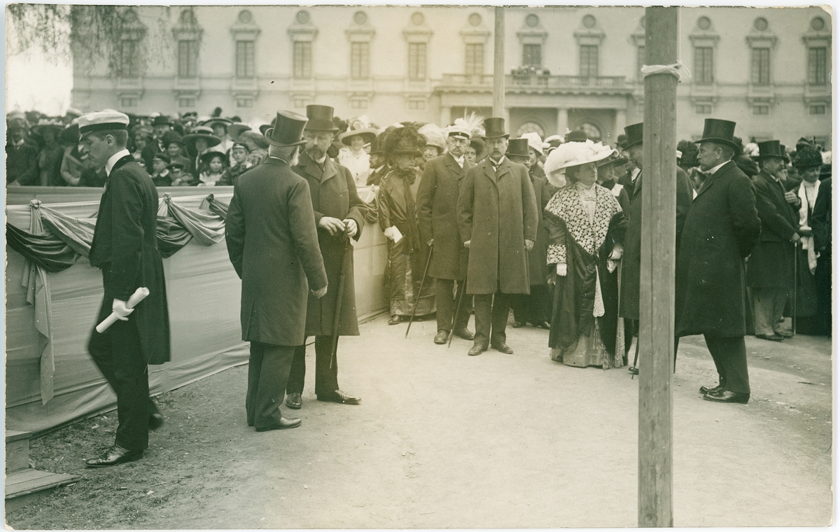 Brevkort - festligheter utanför Carolina Rediviva, Uppsala