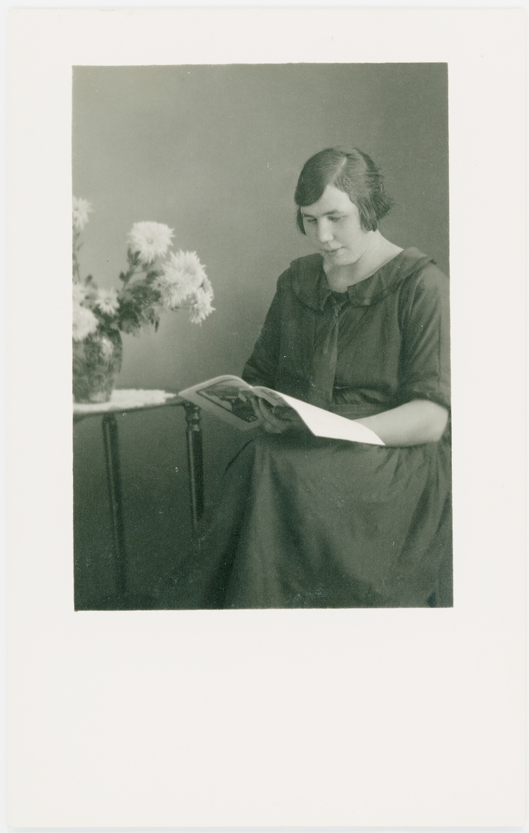 Kabinettsfotografi - kvinna sitter och läser, Norrtälje