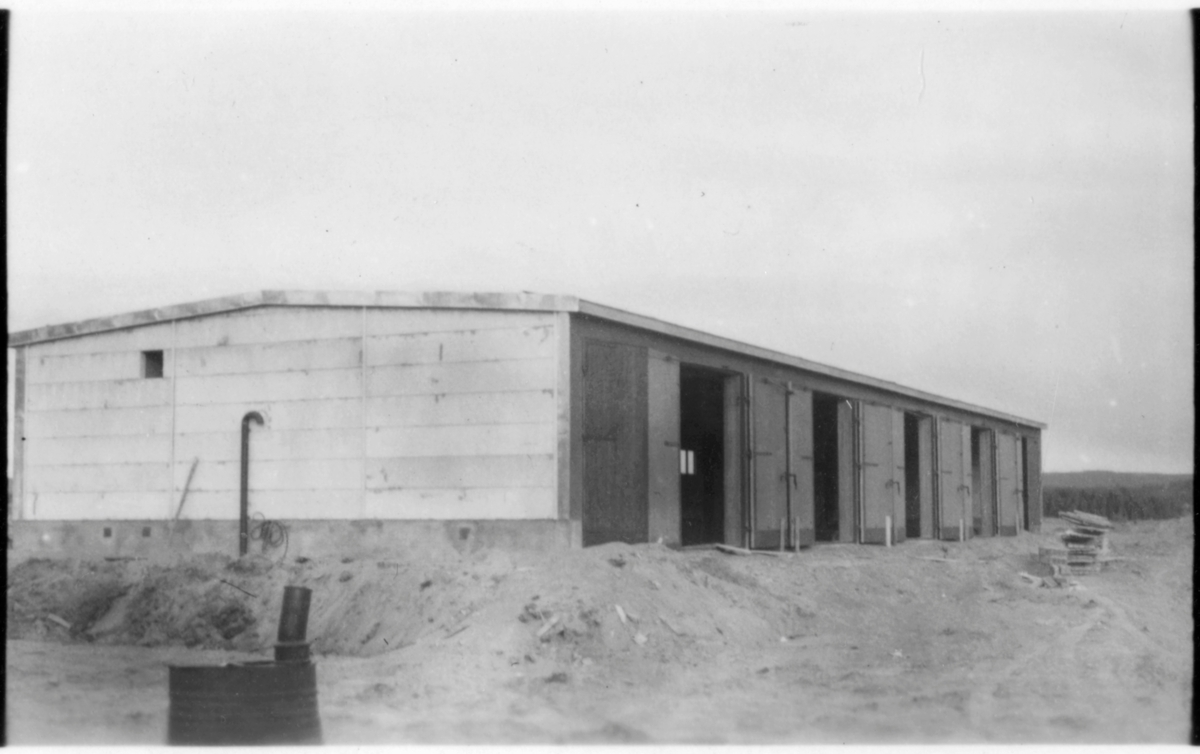 Vägstation BD2, Älvsbyn. Förrådsbyggnad, under uppförande. Markberedning pågår.