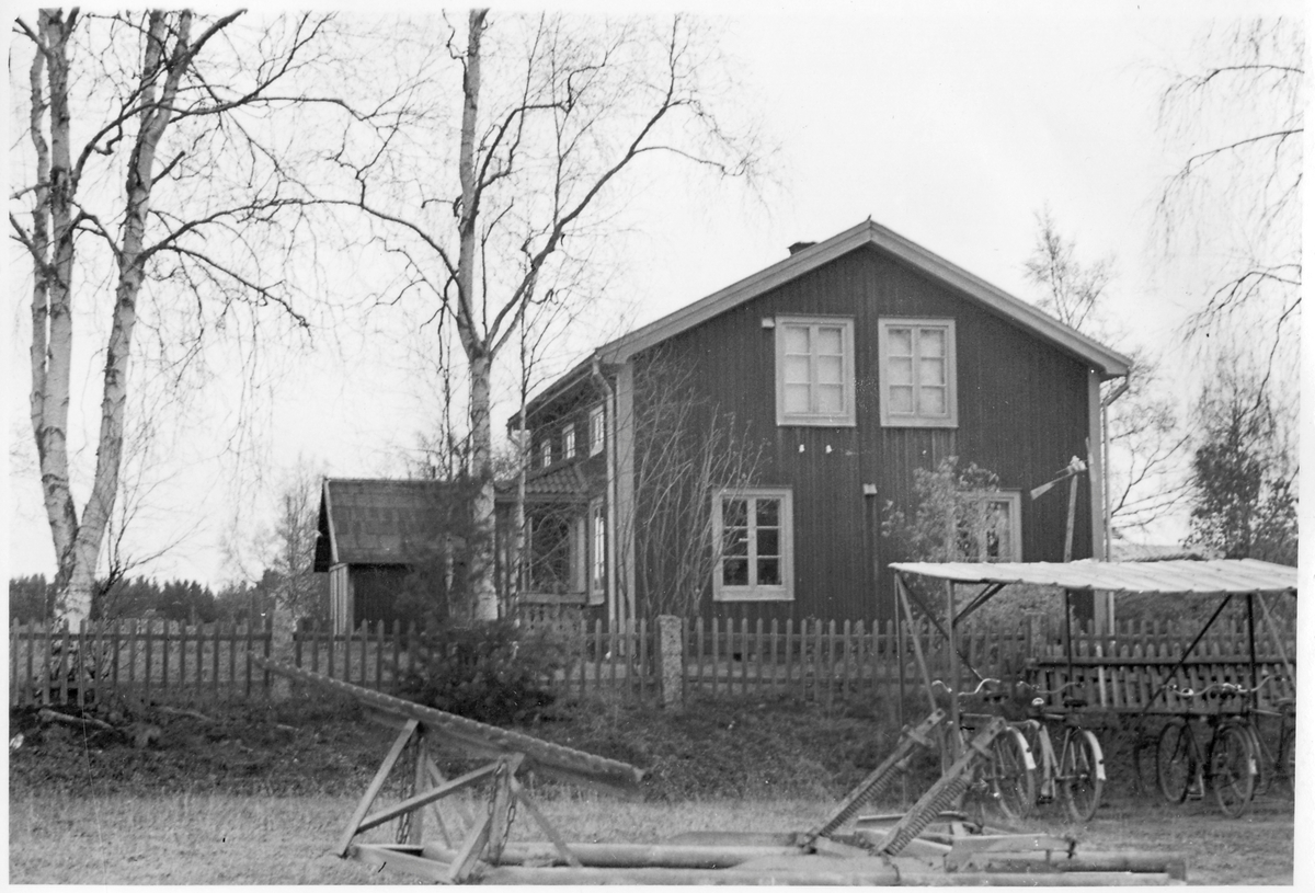 Vägstation Z5, Sveg, filial Ytterhogdal. Bostadshus, eventuellt tjänstebostad. Vägsladd och cykelställ med cyklar i förgrunden.