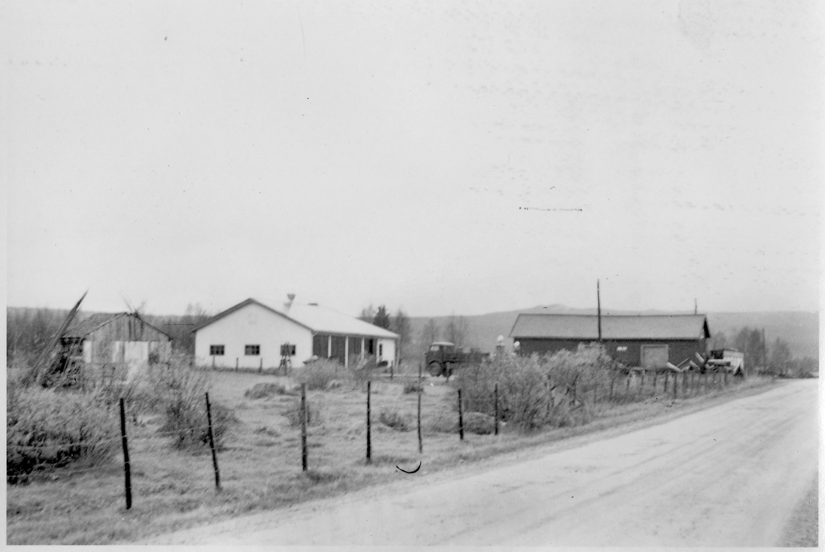 Vägstation Z6, Hede, filial Funäsdalen. Vy över vägstationen med huvudbyggnaden med garage och kontor, förrådsbyggnader. Lastbil på garageplan. Lågt nätstängsel runt anläggningen. Invid väg.