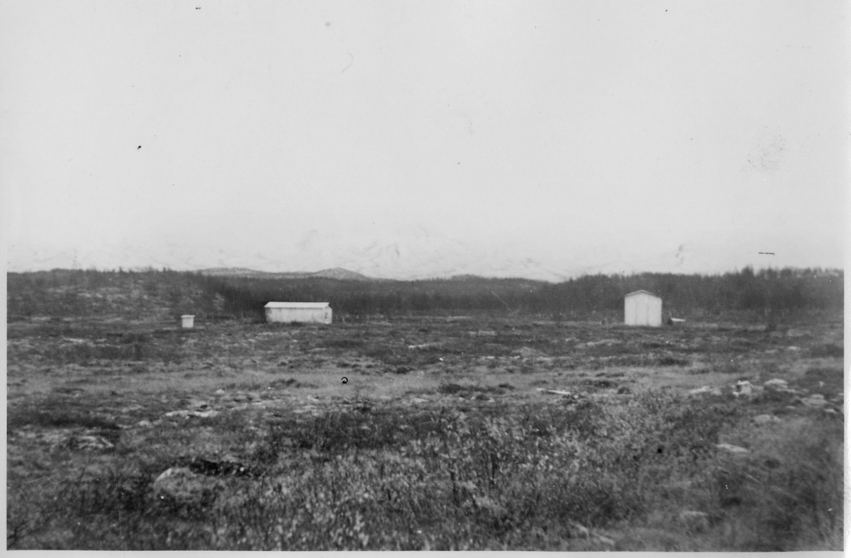 Vägstation Z6, Hede, filial Flatruet. Vy över fjället med garage- och förrådsbyggnader i bakgrunden.