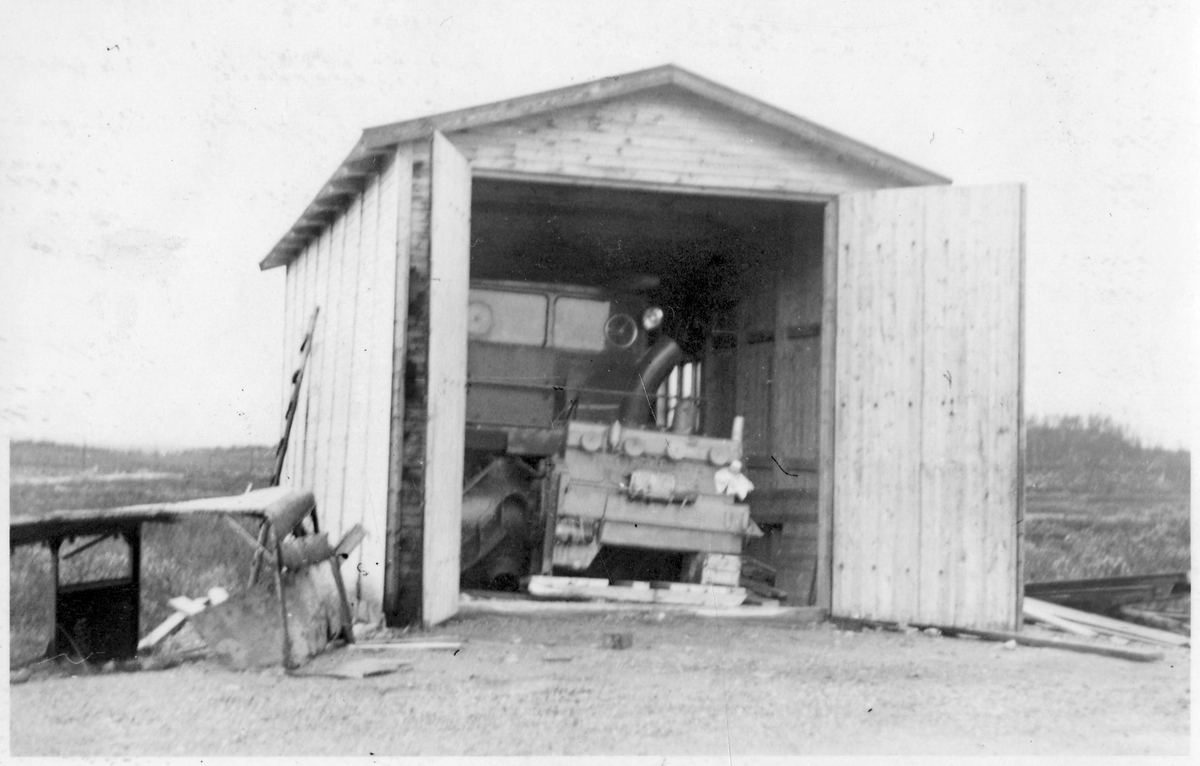 Vägstation Z6, Hede, filial Flatruet. Garagebyggnad med snöslunga.
