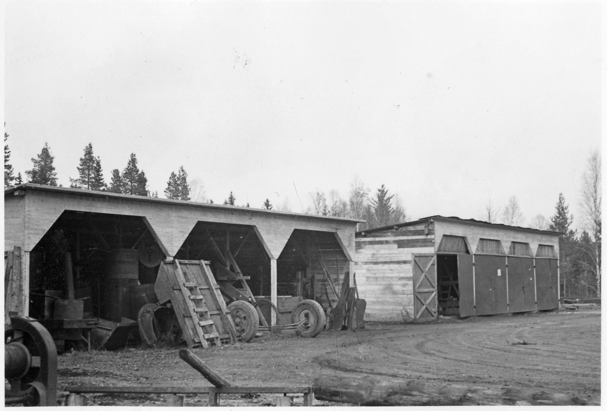Vägstation Z4, Svenstavik. Förrådsbyggnader (öppet skjul) med diverse material, "skrot".