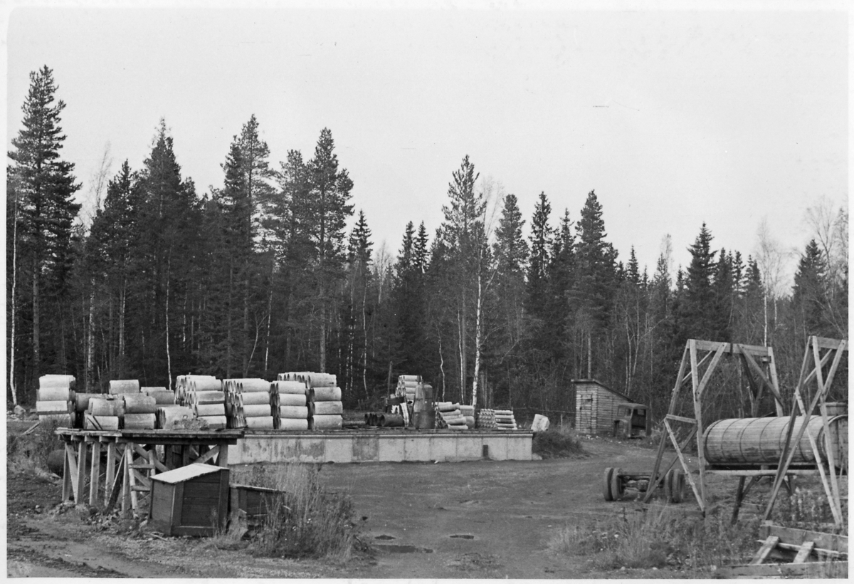 Vägstation Z4, Svenstavik. Upplagsplats för diverse material, bland annat cementrör, diverse "skrot", luttunna på bockar, under vinsch, mindre förrådsbyggnad.