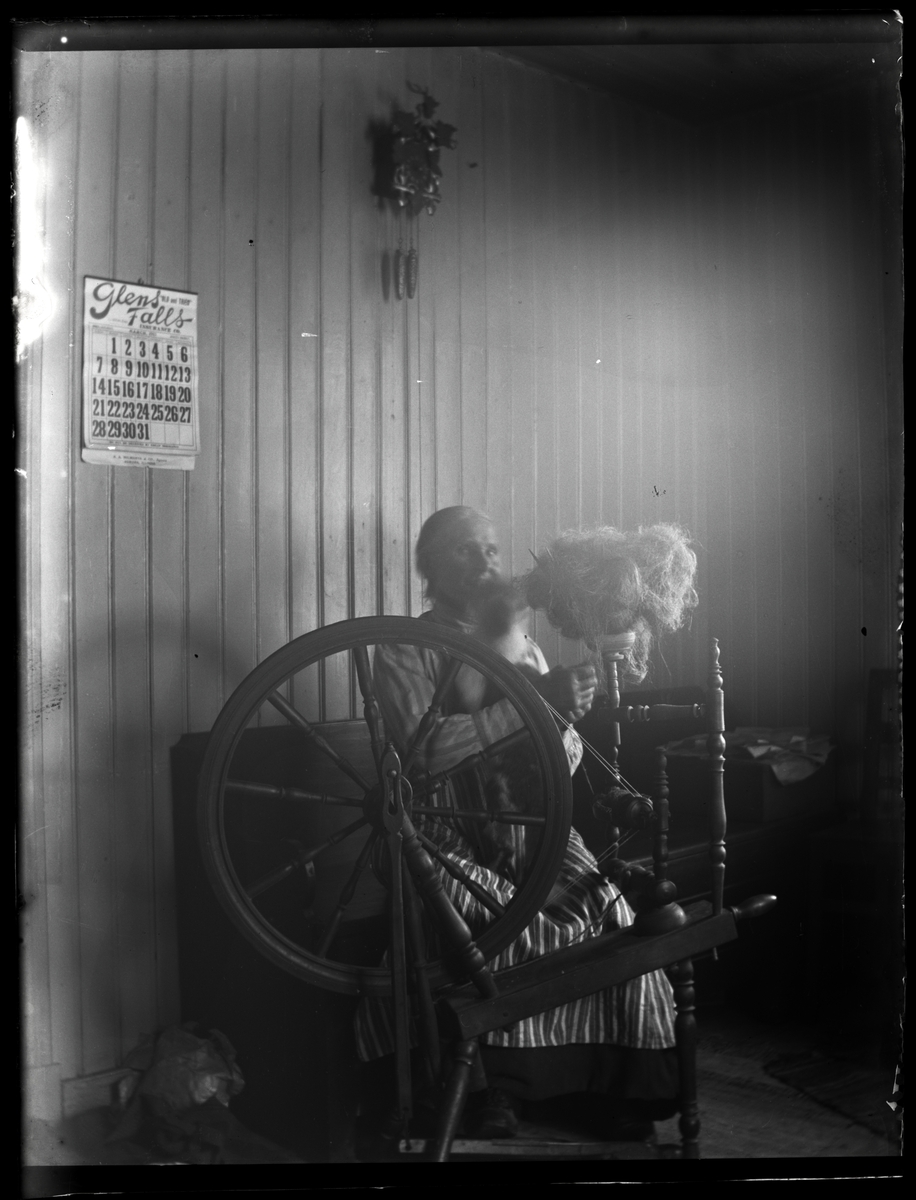 Olivia Olsson Vikander vid spinnrocken