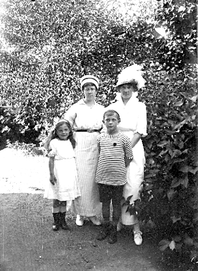 Systrarna Karin och Greta med syskonbarnen Grete och Reinhold.