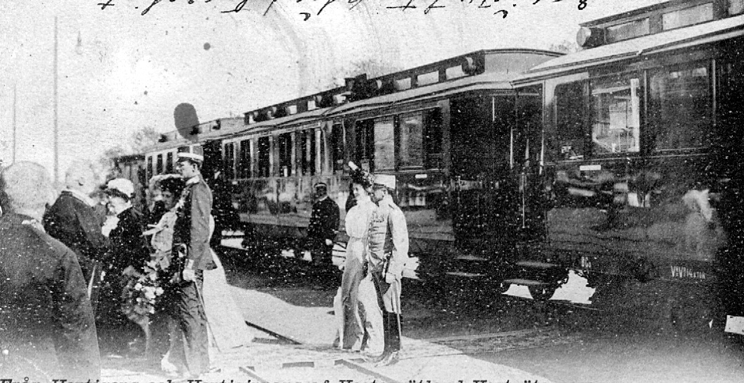 Från Hertig Carl och Hertiginnan Ingeborg av Västergötlands Västgöta-resa. Ankomsten till Skara. 28/6 1902.