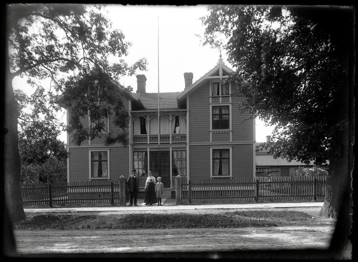 Familjen Bergh framför huset