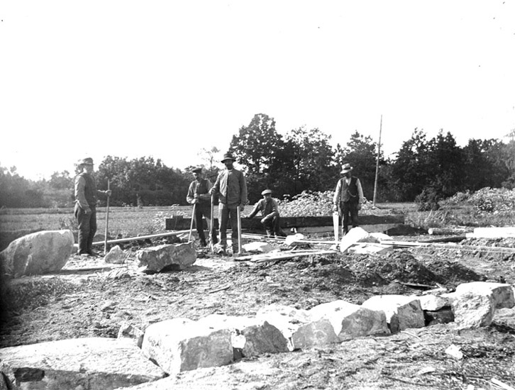 Grundläggning av såghus vid Snikens kvarn.