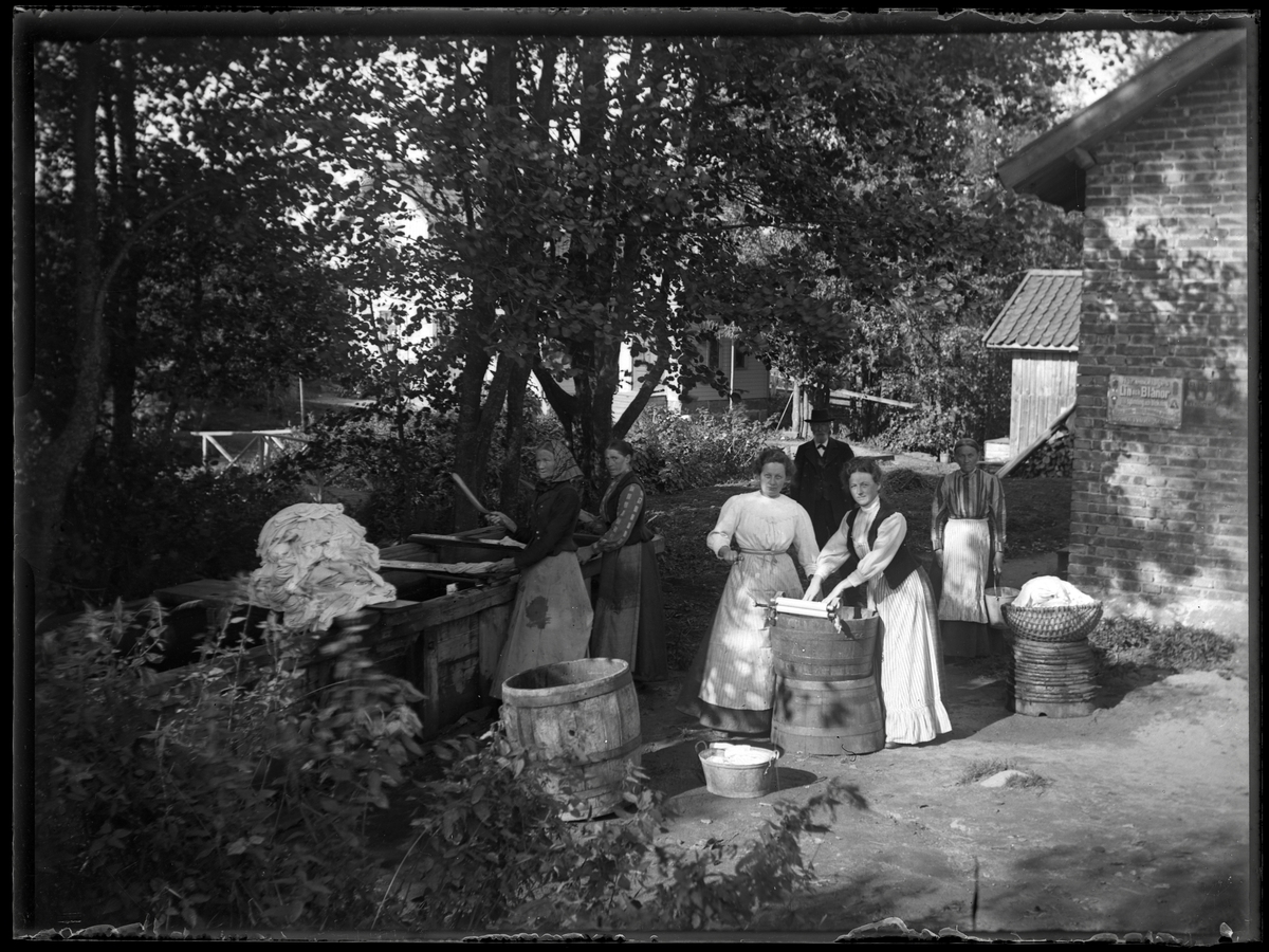 Kvinnor tvättar ute i tunna