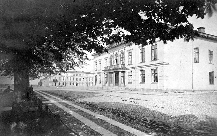 Lidköping. Gamla staden. Hamngatan mot norr. Nya Rådhuset till vänster.