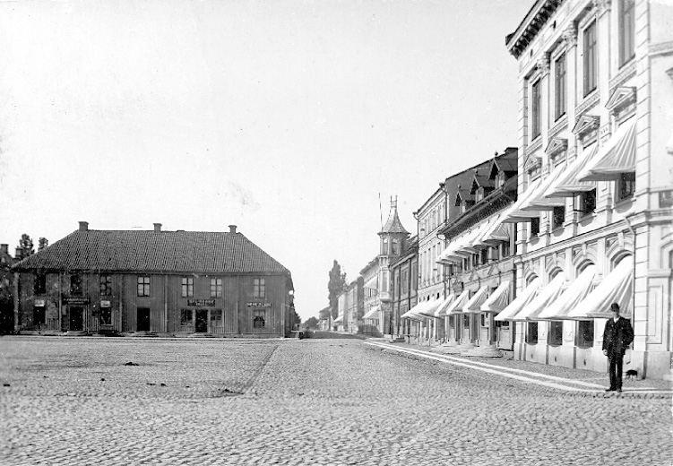 Lidköping. Västra delen av Stora torget mot söder med mynningen av Mellbygatan.
