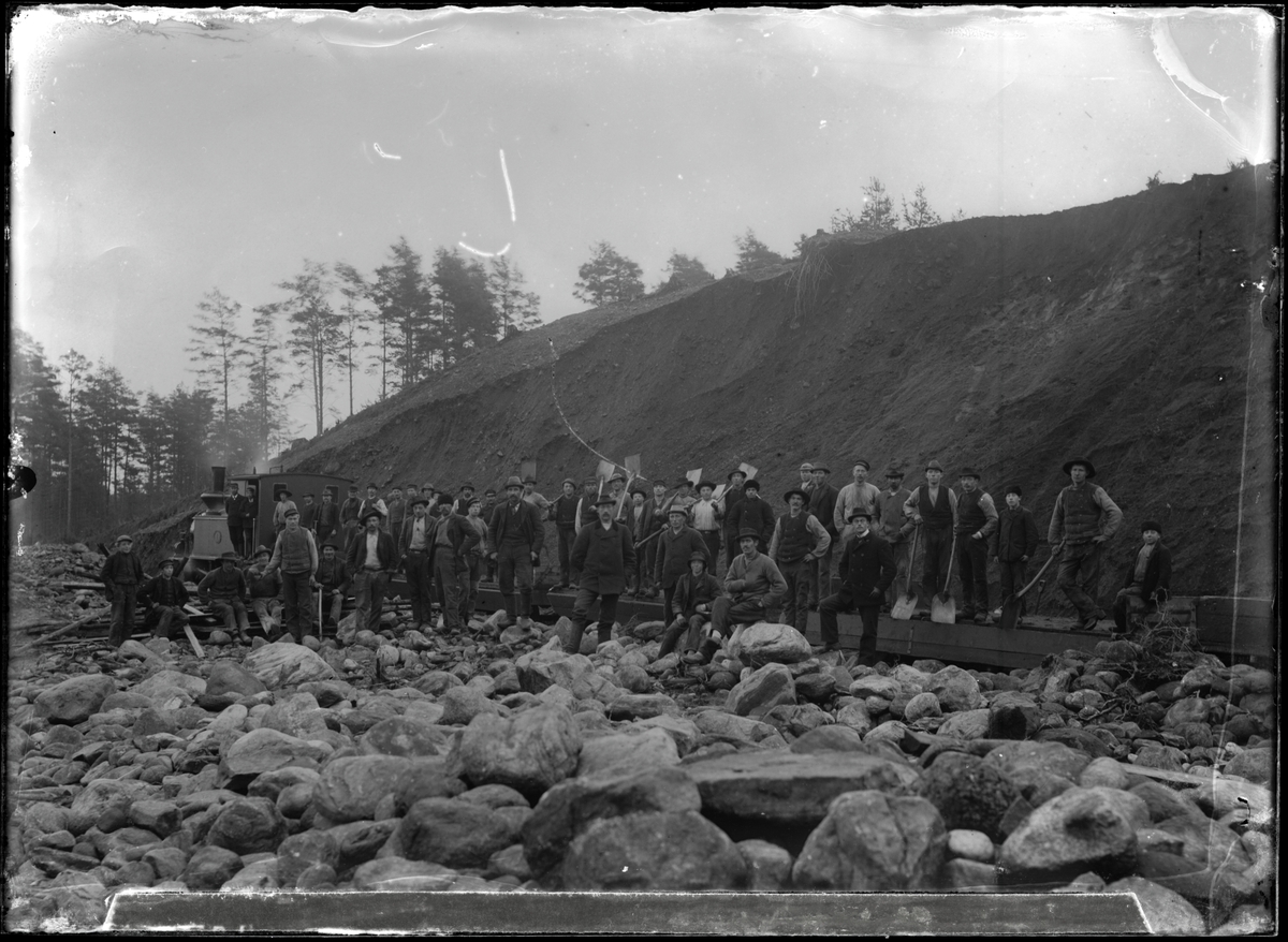 Stenröjning för järnvägsspåret vid Tufva med stickspår till VGJ´s bygge