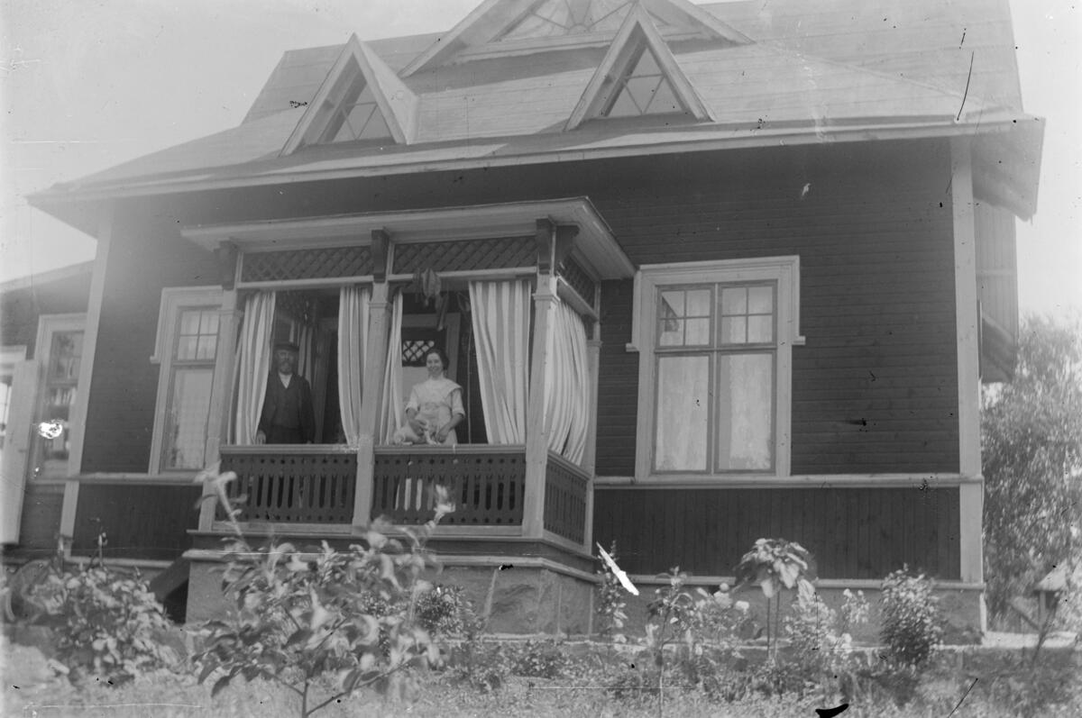 Villa med familj på verandan; Ingår i porträttsamlingen från Knut Wallins ateljé.