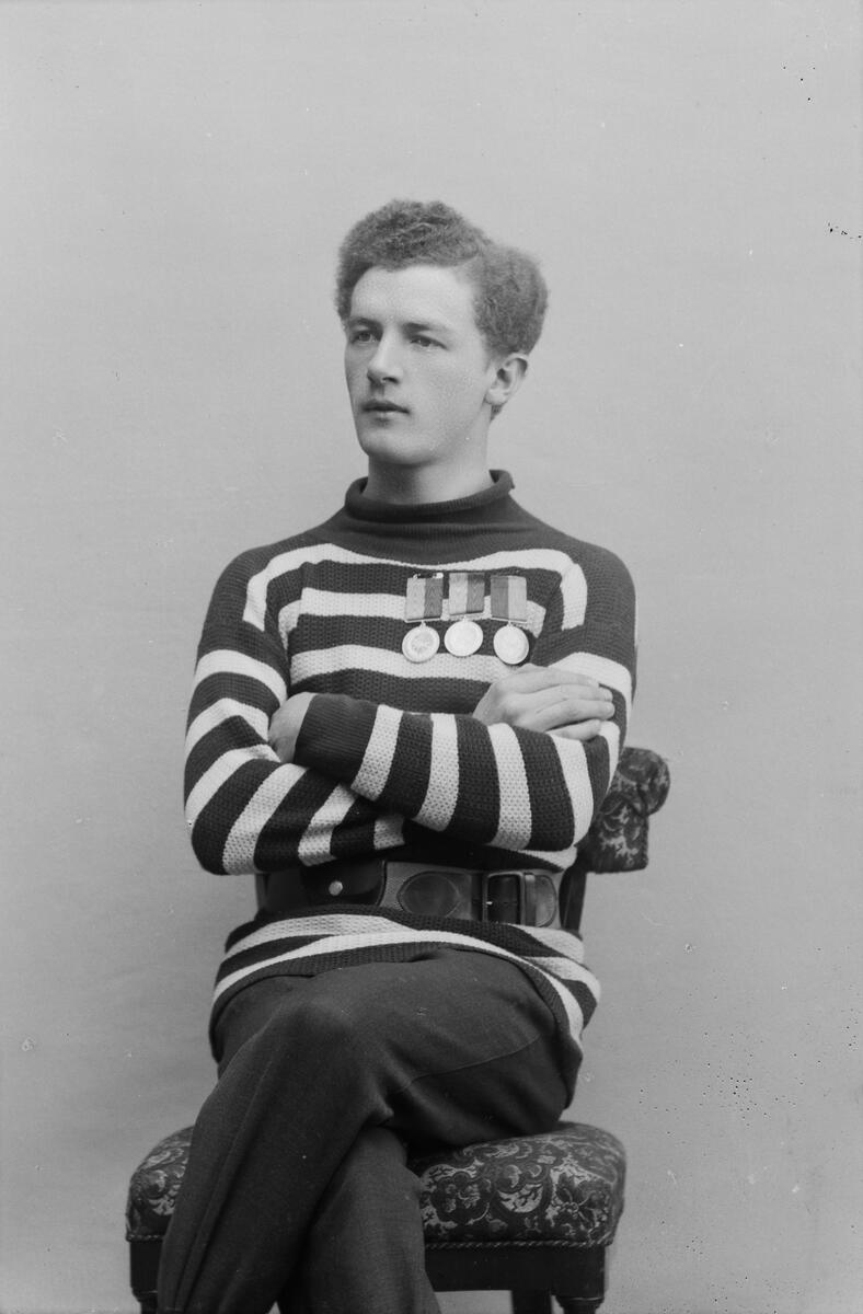 Teodor Edin i HSS tröja; Ingår i porträttsamlingen från Knut Wallins ateljé.