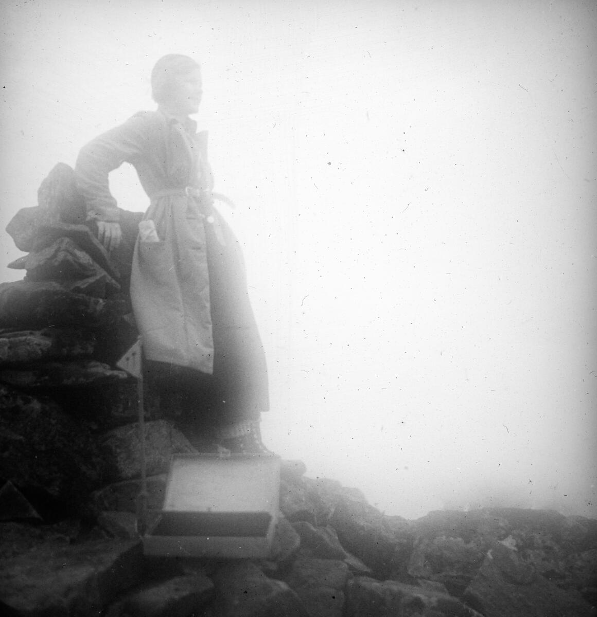 Kvinna i fjällen. Märkt G Berglunds Ljusbildstillverkning