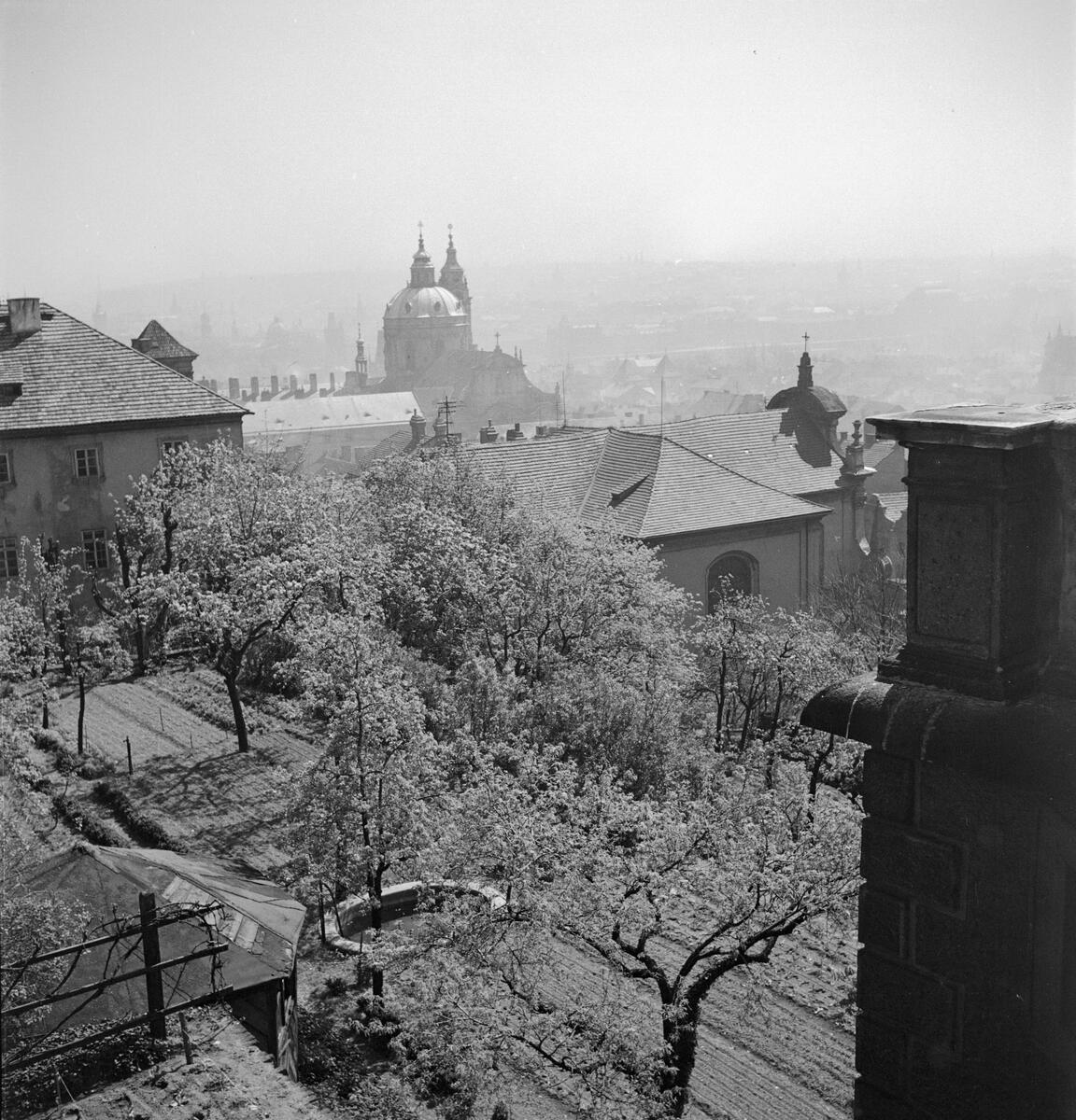 Vy över Prag. I bildens mitt syns St. Nikolauskyrkans torn. Tjeckoslovakien-Ungern-Österrike 1935.
