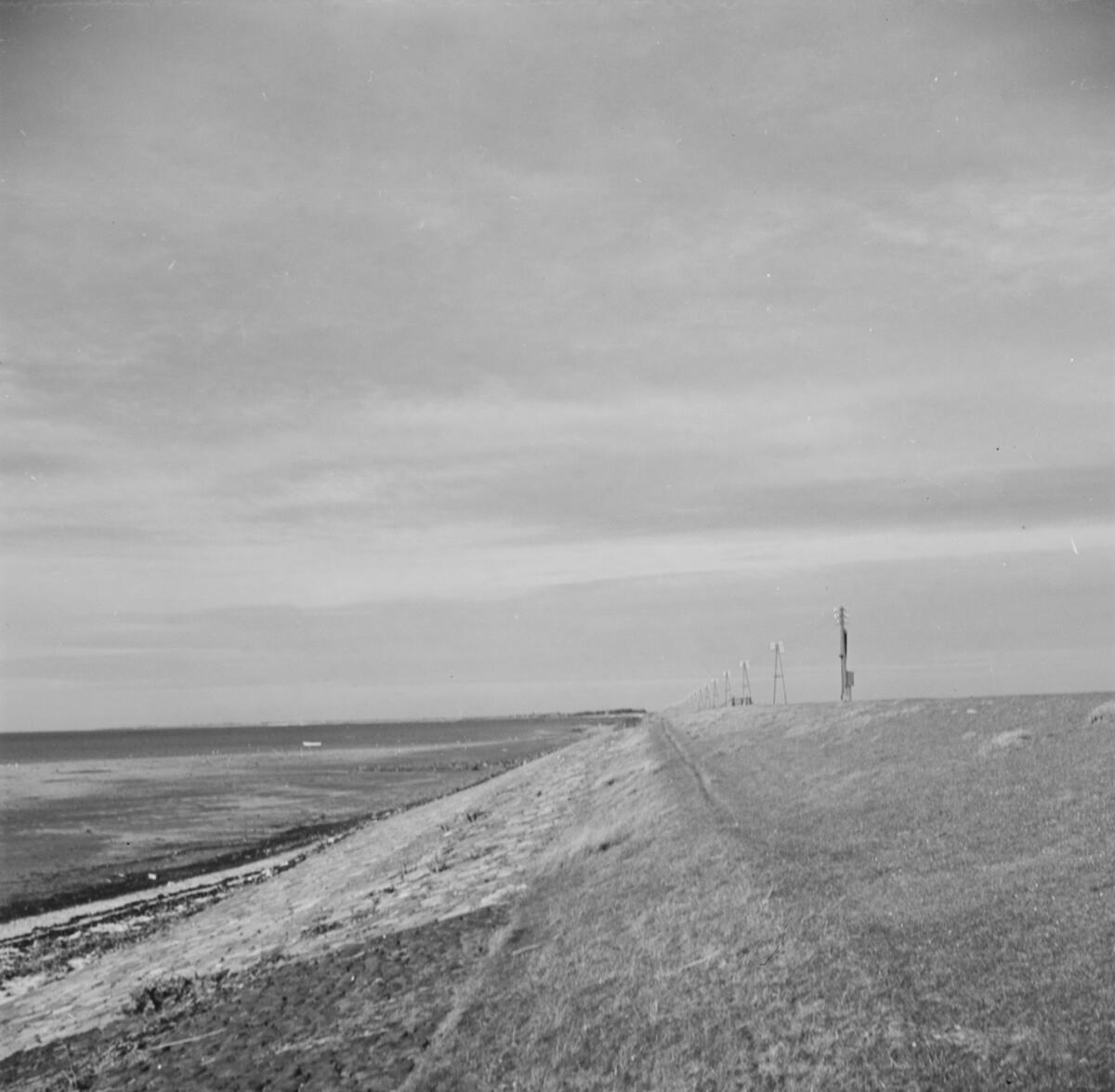 Bron Afsluitdijk? vid Zuiderzee, (nuvarande IJsselmeer). Tyskland-Holland-Belgien 1938. IJsselmeer är en insjö i Nederländerna som uppstod genom uppförandet av en dammbyggnad i Zuiderzee, en vik av Nordsjön.