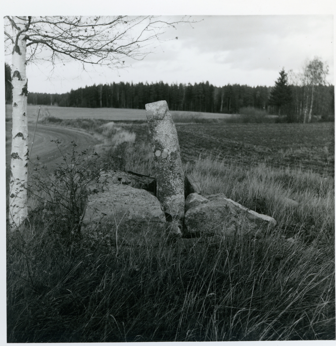 Hörnsjöfors 1:5. Milstolpe och fundament.