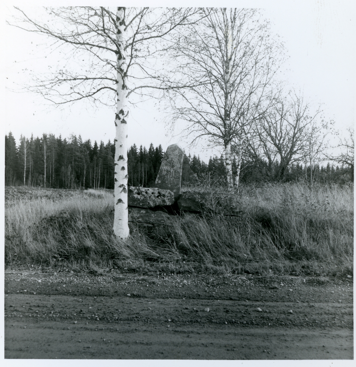 Hörnsjöfors 1:5. Milstolpe och fundament.