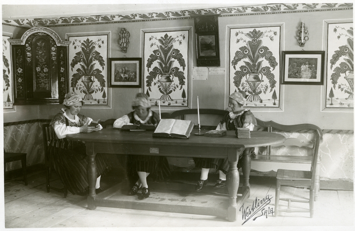 Gammelgården. Läsning i Helgdagsstugan, 1930-tal.