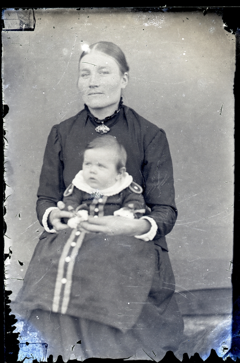 Porträttfoto av ung kvinna med spädbarn.