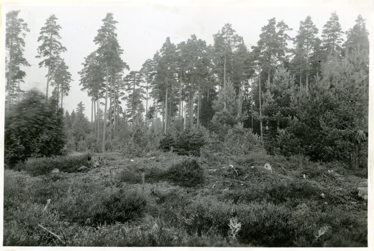 Alvesta nr 3, fornlämning nr 6 från söder, efter att småträden på fornlämningen borttagits, 1951.