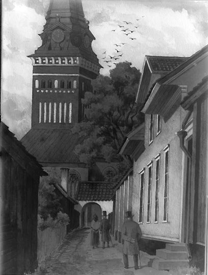 Akvarell med Västeråsmotiv av Rudolf Gagge.