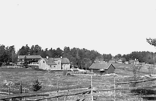 Utsikt över museet från herrgården, Vallby friluftsmuseum i Västerås.