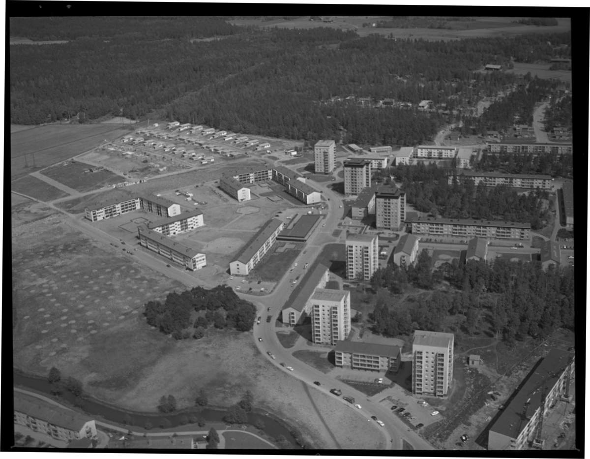 Flygfoto över stadsdel Skogsborg, Köping.