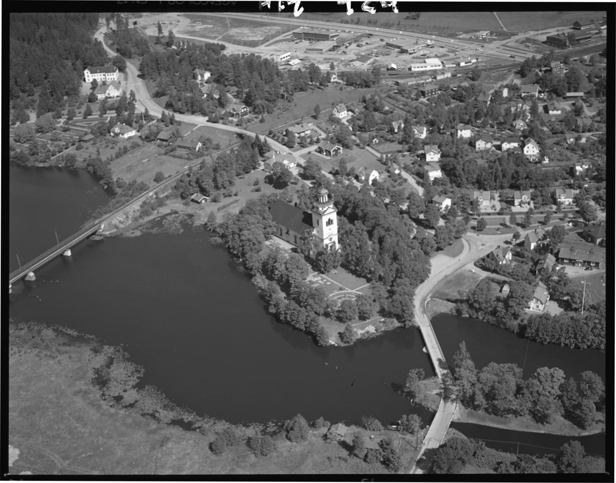 Flygfoto över Västanfors kyrka, Fagersta.