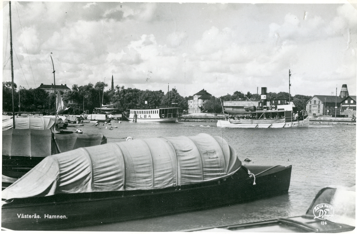 Hamnbassängen med nya bogserbåten Thor. Slutet av 1930-talet.