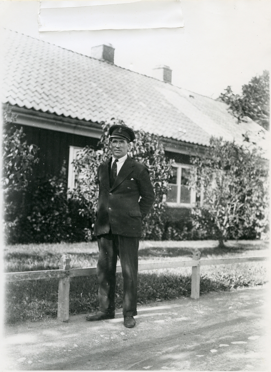 Kranförman Emil Engström utanför Hamnkontoret, 1930.
