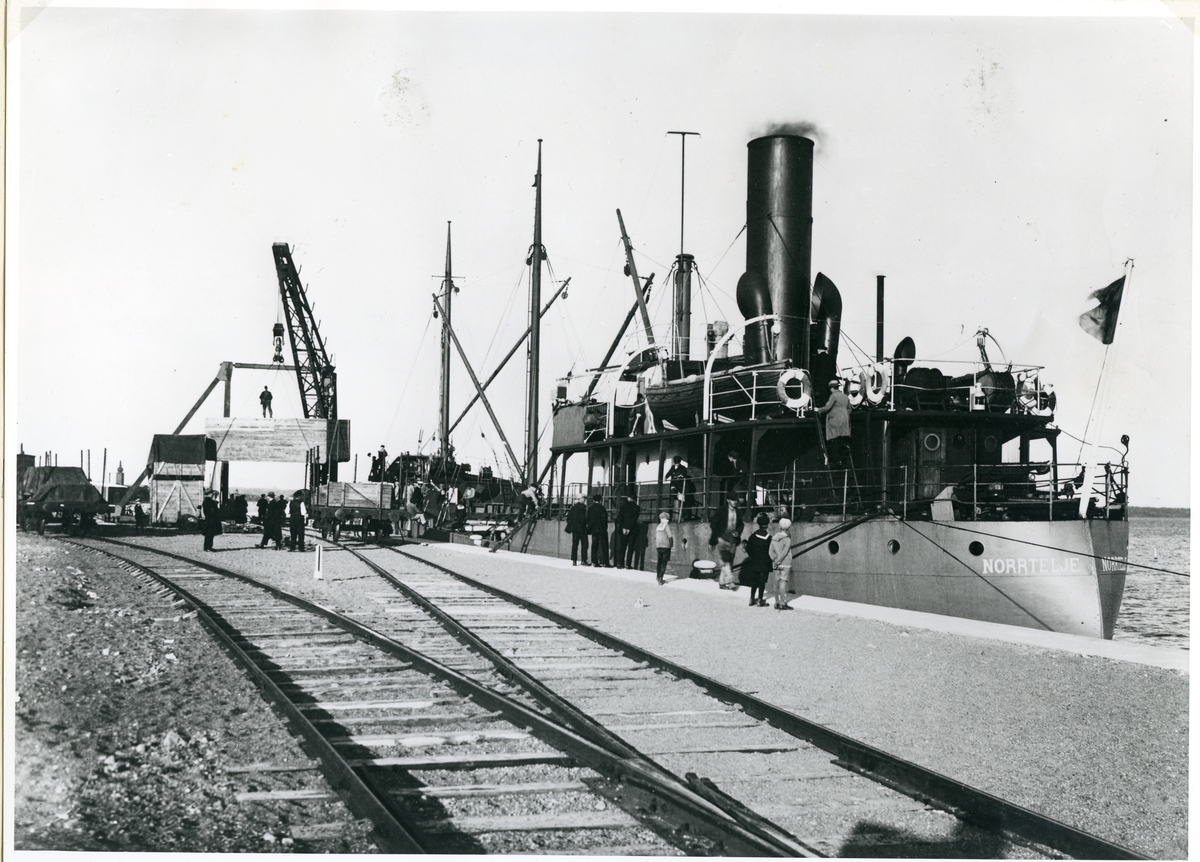 Hamnen. Lastning av maskingods ombord på "Norrtelje", 1925.