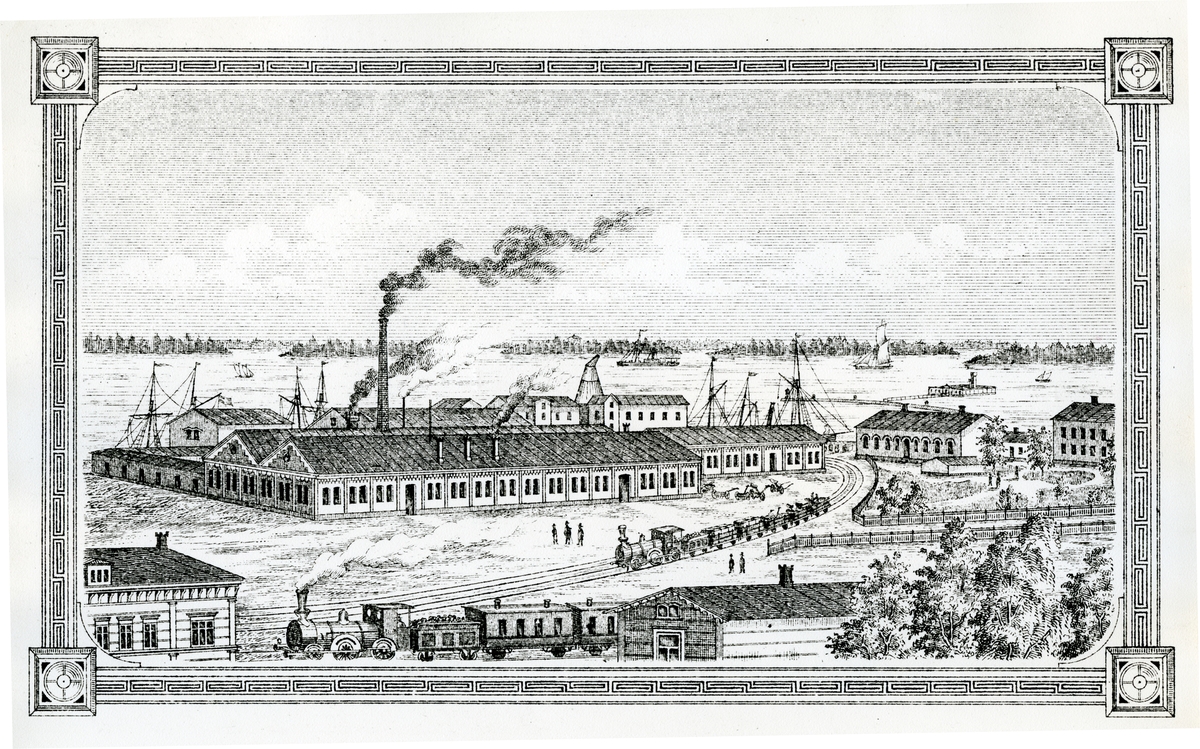 Gamla hamnen och Westerås Mekaniska Werkstad, c:a 1890.