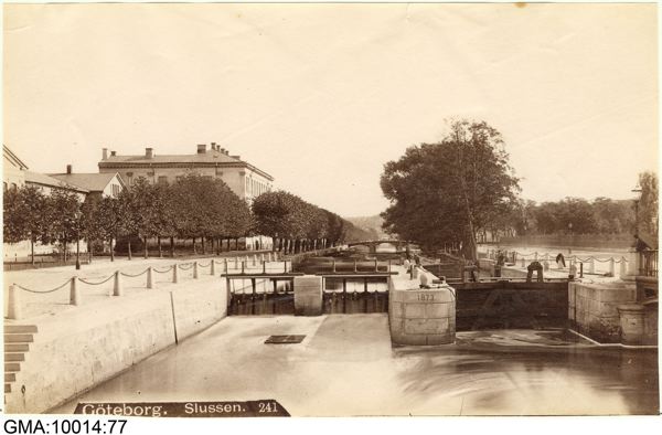 Slussen vid Drottningtorget. Fotografi, 1880-tal.