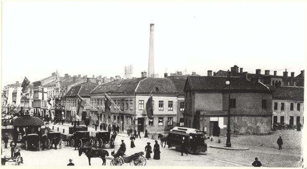 Östra Hamngatan vid vattenreservoaren 1888. (Darrige) Tandläkare Beskoj hyrde i reservoaren. Trekinbyrån låg snett bakom.