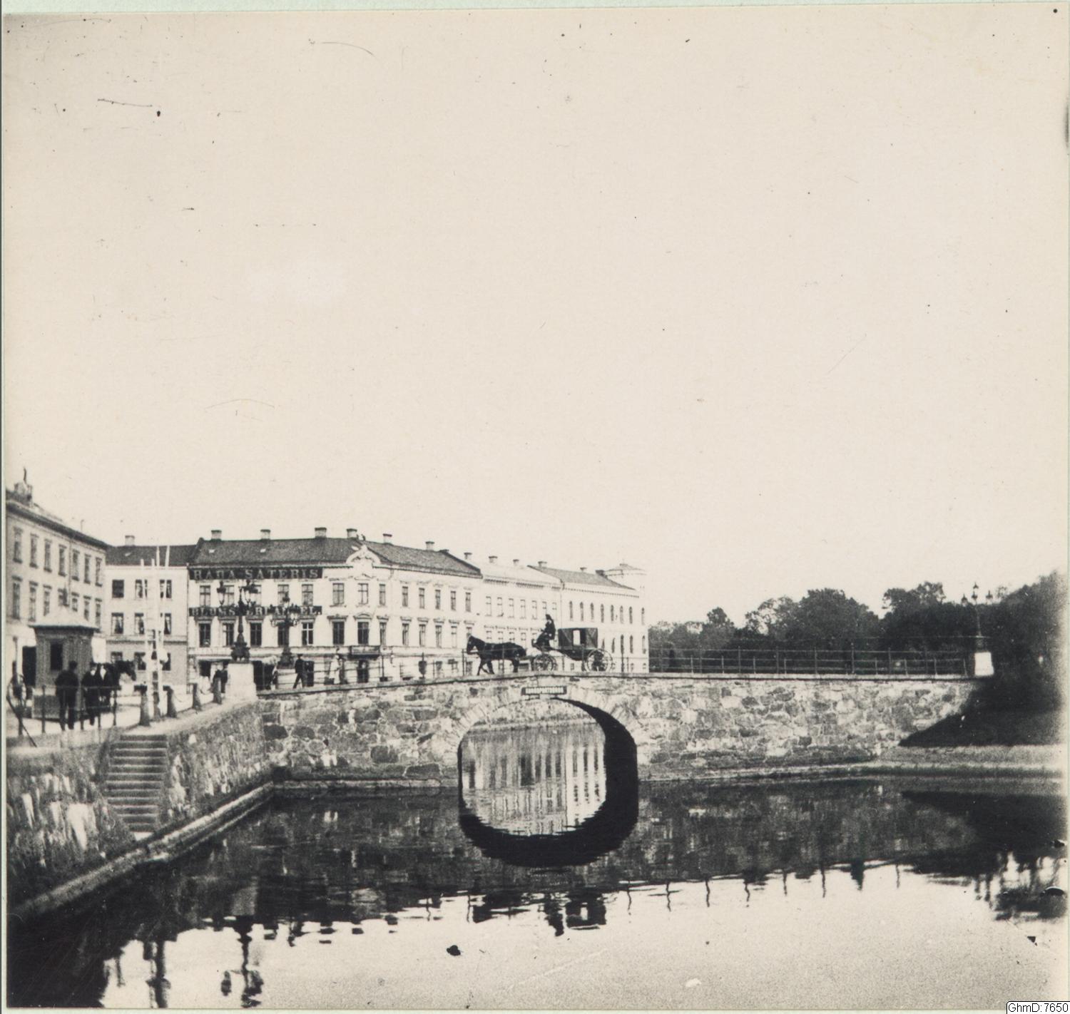 Vallgraven och Kungsportsbron, i bakgrunden Stora Nygatan till höger och till vänster skymtar Trädgårdsföreningen.