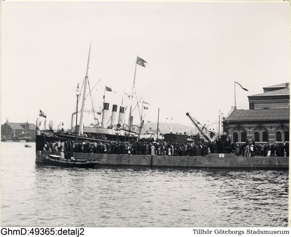 Beskrivning: Oscar II:s Drott vid Packhuskajen, 1890-talet.