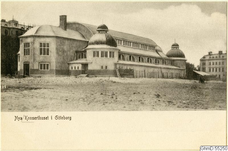 Svartvitt fotografi, taget mot nordväst. I fonden skymtar bostadshus på Parkgatan.
