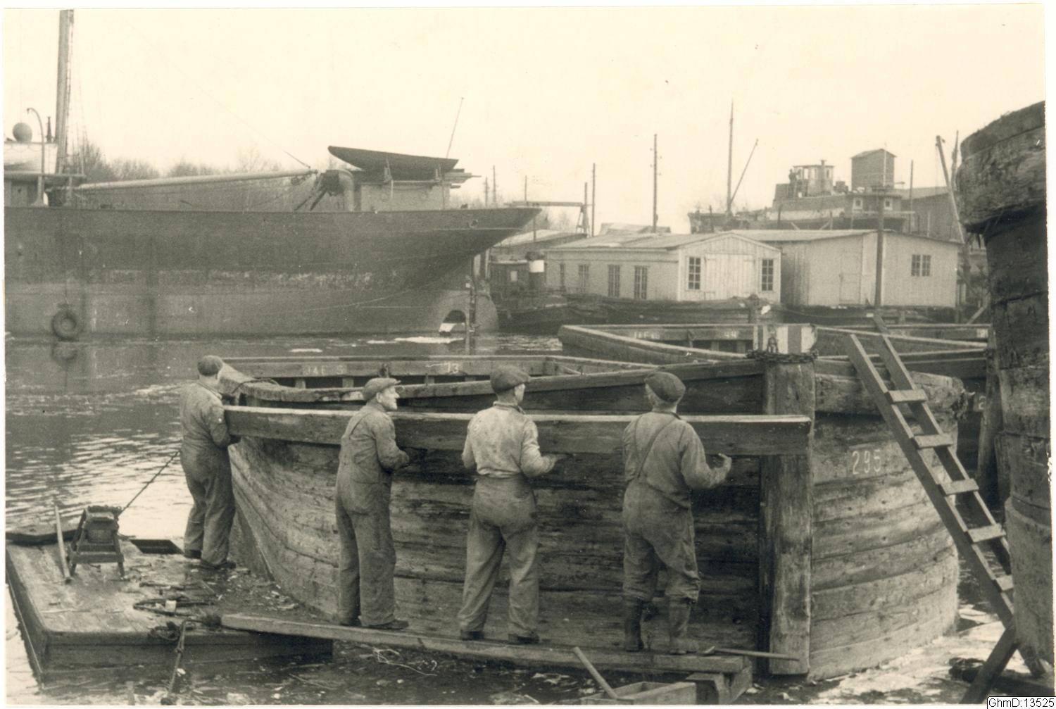 Pråmvarv å Ringön. I bakgrunden Gotenius Varv & Mekaniska verkstad.