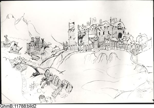 Belägringen 1502. Teckning av en tysk landsknekt, Paul Dolnstein. Foto efter noggranna avritningar i stor skala (G.M.)
