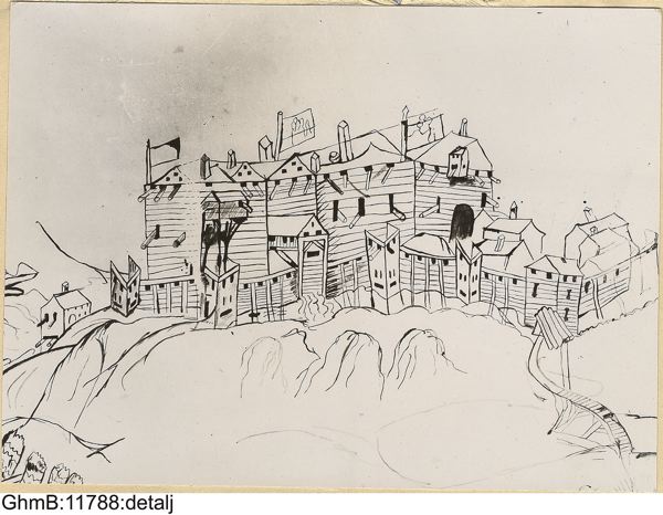 Belägringen 1502. Teckning av en tysk landsknekt, Paul Dolnstein. Foto efter noggranna avritningar i stor skala (G.M.)