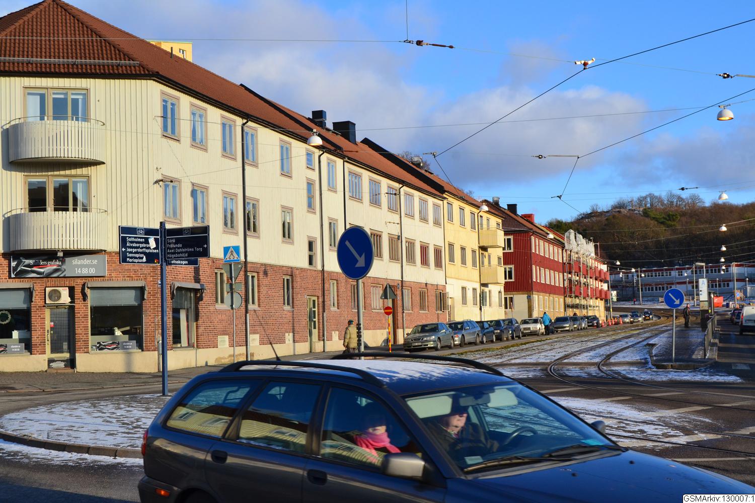 Ekedalsgatan mot öster, Slottsskogen i fonden.
