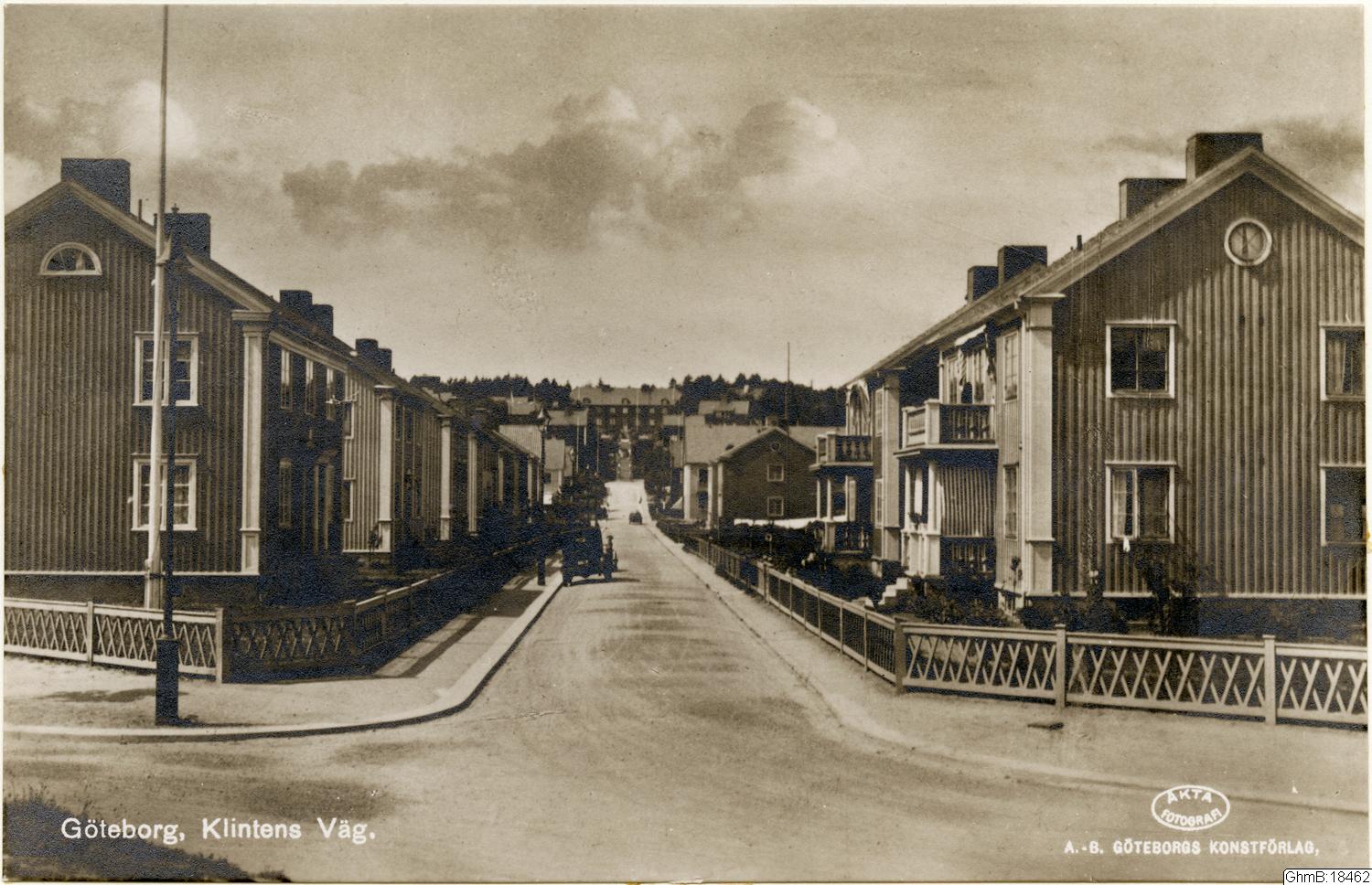 Klintens Väg från korsningen Sundhagsgatan västerut, Kungsladugård egnahemsområde. I fonden Klintens trappor.