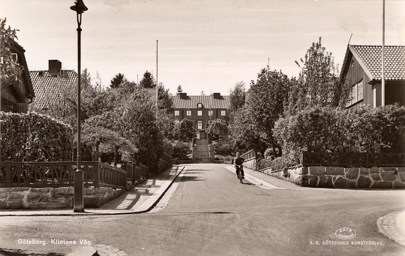 Egnahemsområdet i Kungsladugård vid Klintens Väg. Blick från korsningen Oxhagsgatan västerut mot Klintens trappor och Svalebogatan.
